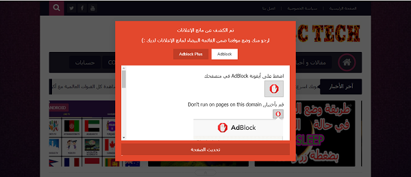 تعطيل اضافة Adblock من العمل على موقعك لحجب الاعلانات