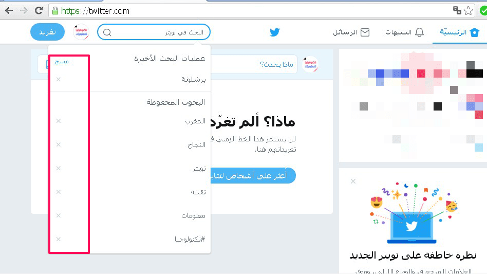 شرح لطريقة حذف سجل البحث في تويتر نيوتك New Tech