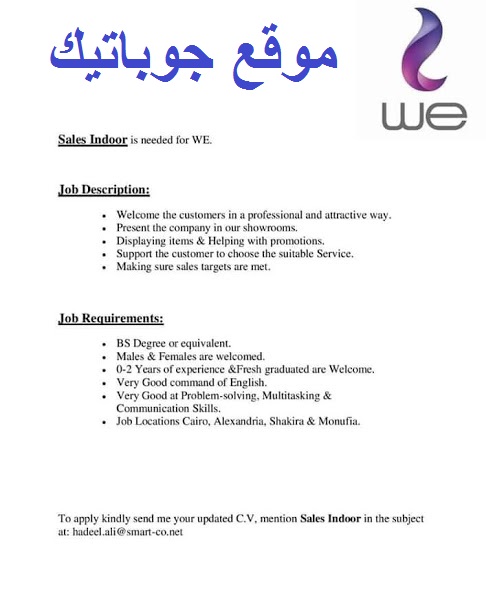 والعمل من المنزل شركة We تعلن عن وظائف شاغرة بمرتب 3750 جنيه للمؤهلات العليا والشروط والتفاصيل وطريقة التقديم