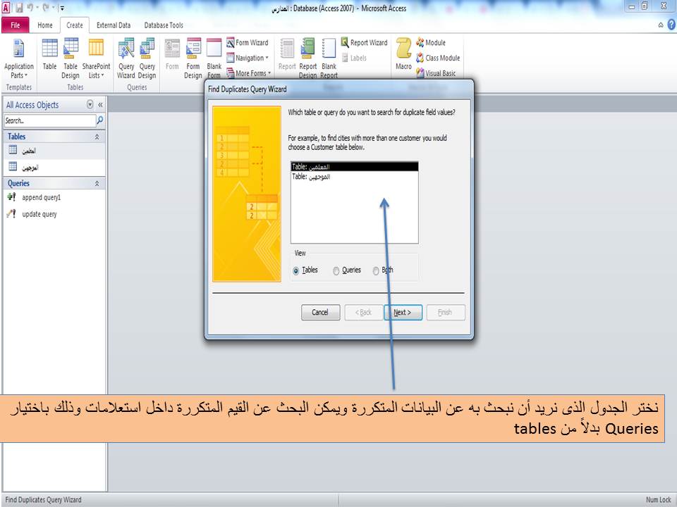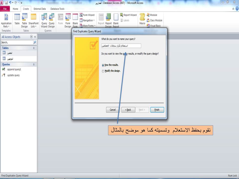 إنشاء استعلام Create Query للبحث عن القيم المكررة Duplicate Valuesفي برنامج الاكسيس Ms Access مدرسة الويب Web School