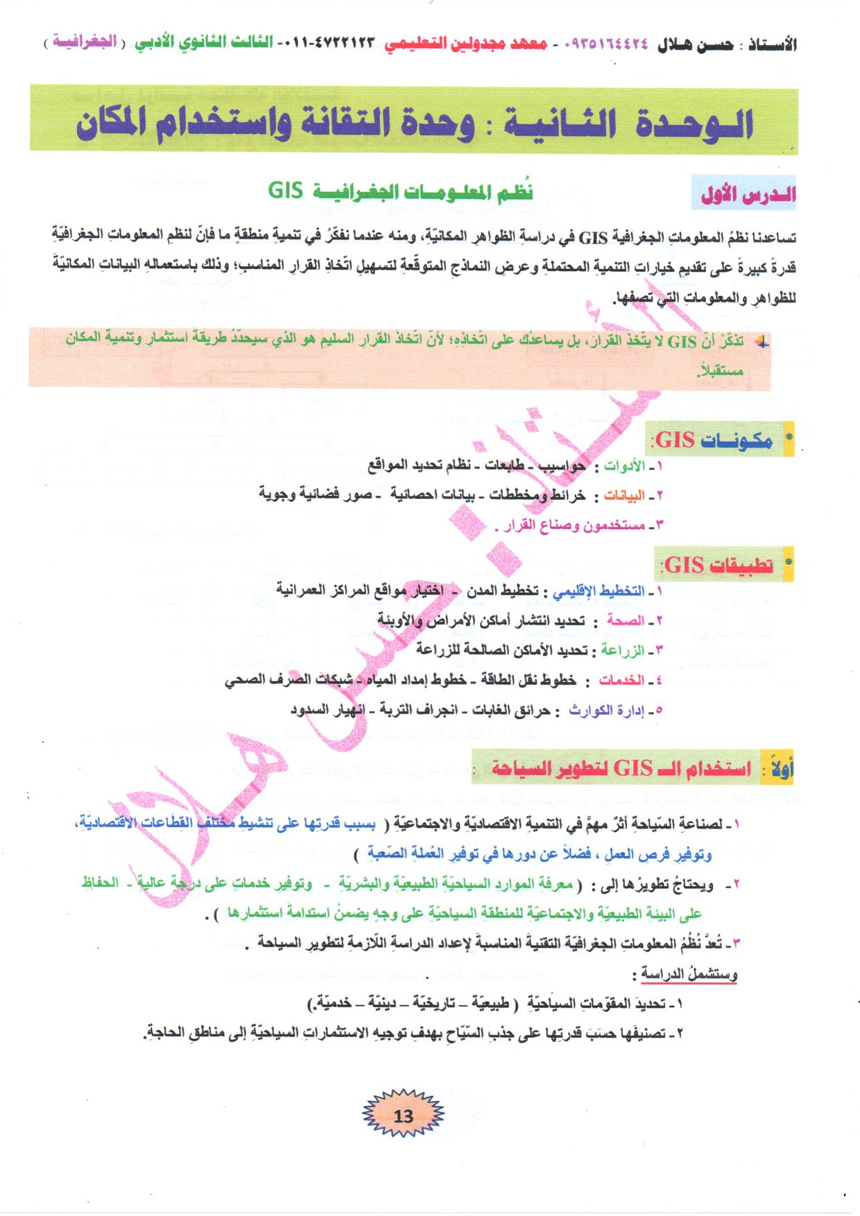 الوحدة الثانية نظم المعلومات الجغرافية Gis في الجغرافية بكالوريا سوريا 2021