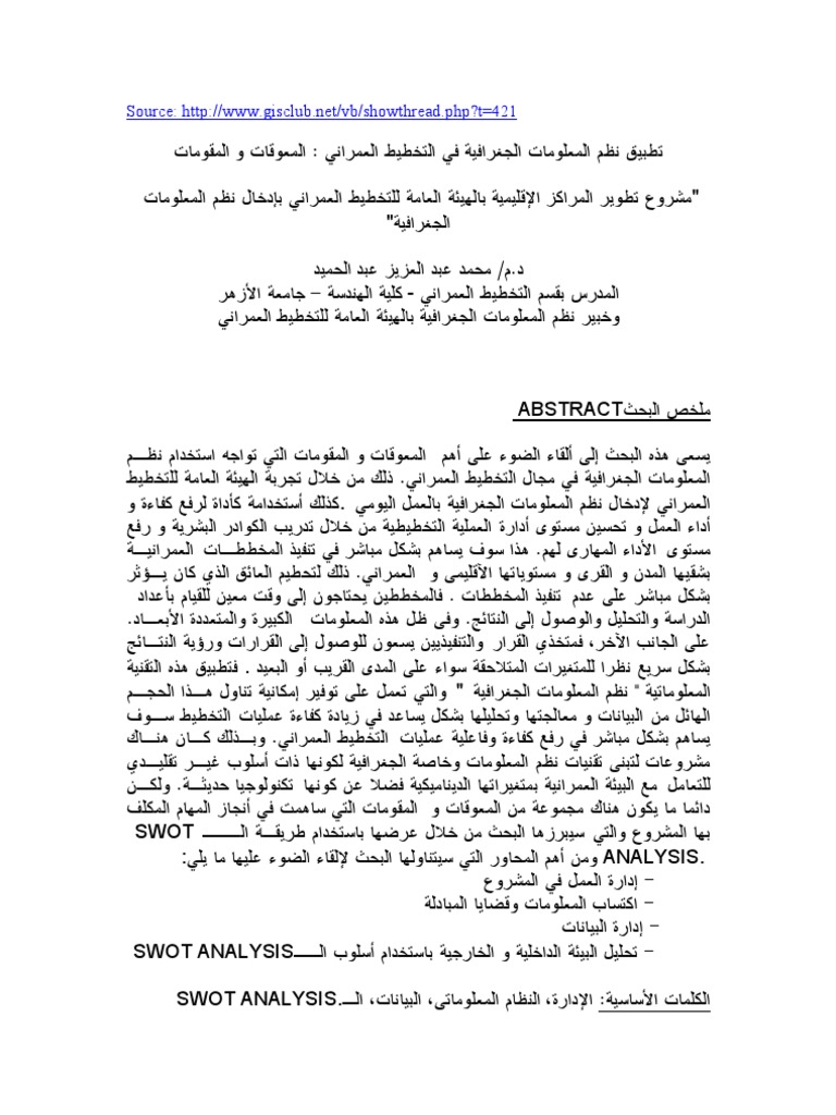 تطبيق نظم المعلومات الجغرافية فى التخطيط العمرانى المعوقات و المقومات