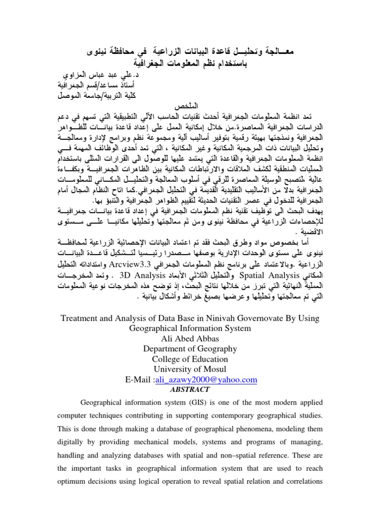 معالجة وتحليل قاعدة البيانات الزراعية في محافظة نينوى باستخدام نظم المعلومات الجغرافية Geography Geographic Information System