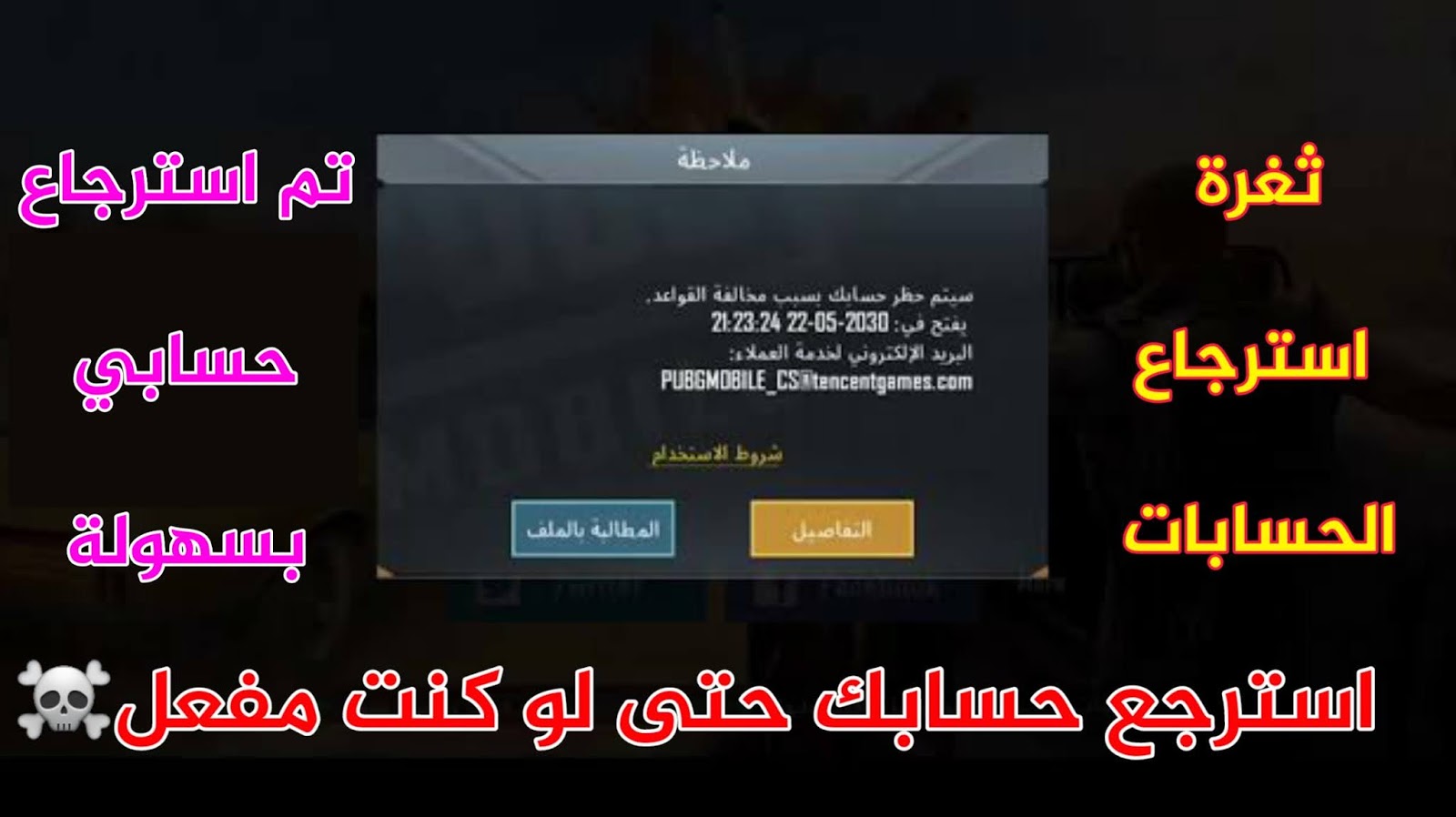 ثغرة استرجاع حساب ببجي موبايل المحظور حتى لو كنت مفعل بطريقة مضمونة 100 اسرع قبل اغلاق الثغرة