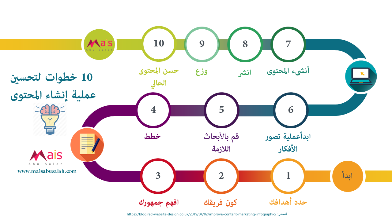 10 خطوات لتحسين عملية إنشاء المحتوى انفوجرافيك