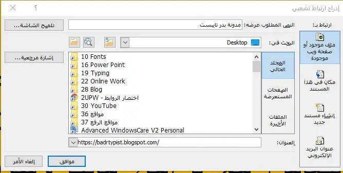 كيفية عمل رابط في كلمة