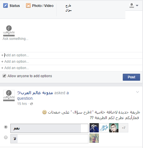 طريقة عمل إستطلاع رأي على بروفايلك أو صفحتك على الفيس بوك بدون أي أضافة شروحات