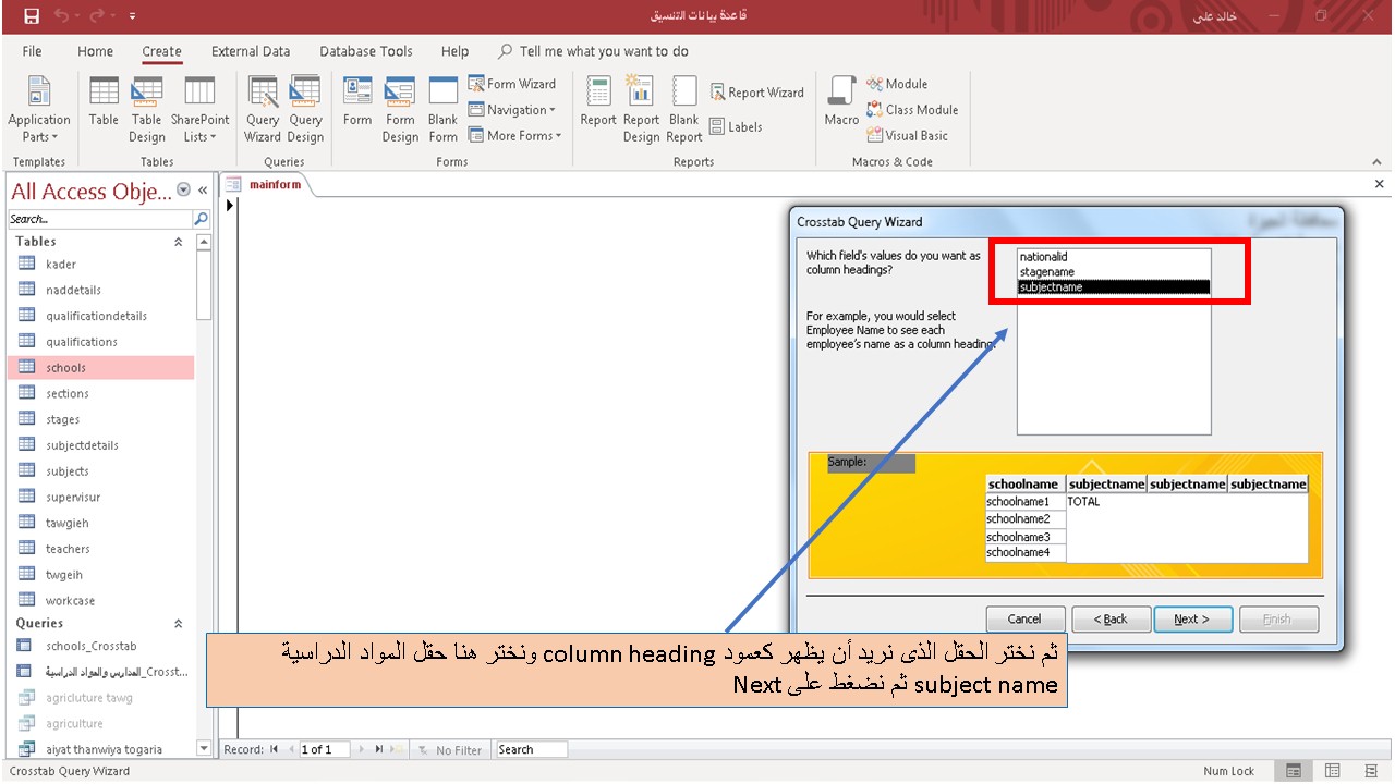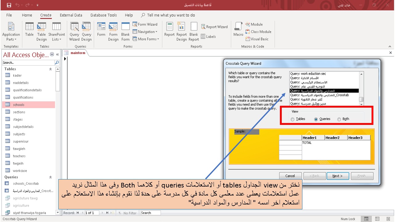 طريقة عمل الاستعلام الجدولي Crosstab Query في برنامج الاكسيس Ms Access مدرسة الويب Web School