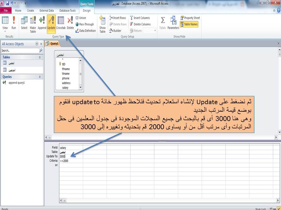 إنشاء استعلام تحديث Update Query في قواعد البيانات أكسيس Ms Access مدرسة الويب Web School