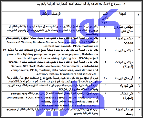 وظائف خالية للعمالة الفنية المصرية بدولة الكويت بمشروع اعمال Scada