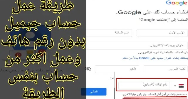 كيفية انشاء اكتر من 50 حساب جيميل Gmail حقيقى بدون رقم هاتف انشاء حساب جوجل بدون رقم تليفون Youtube
