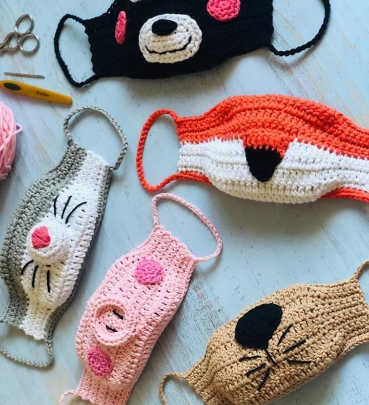 طريقة عمل كمامات من الكروشيه اشكال مميزه مع الباترون وبها كسوه وتغسل