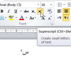 كيفية عمل الأس للأعداد في الوورد