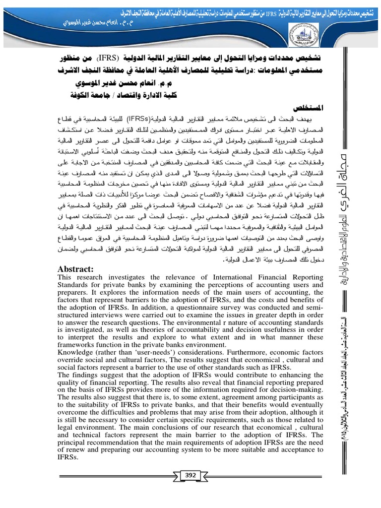 تشخيص محددات ومزايا التحول إلى معايير التقارير المالية الدولية من منظور مستخدمي معلومات