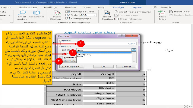 إدراج التسميات التوضيحية Caption للجداول والأشكال في برنامج الوورد Microsoft Word مدرسة الويب Web School