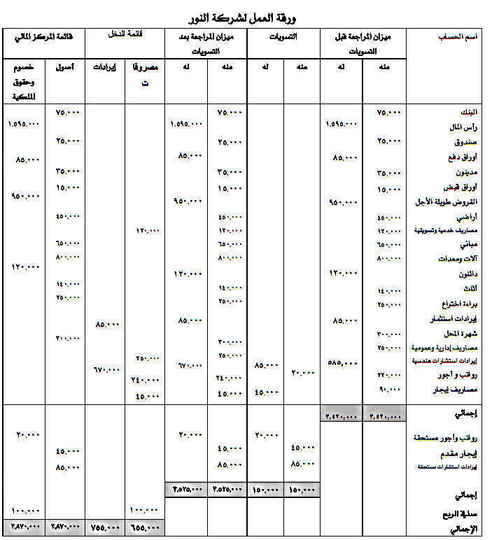 شرح ميزان المراجعة المعدل وورقة العمل التسوية مع الأمثلة أسود البيزنس