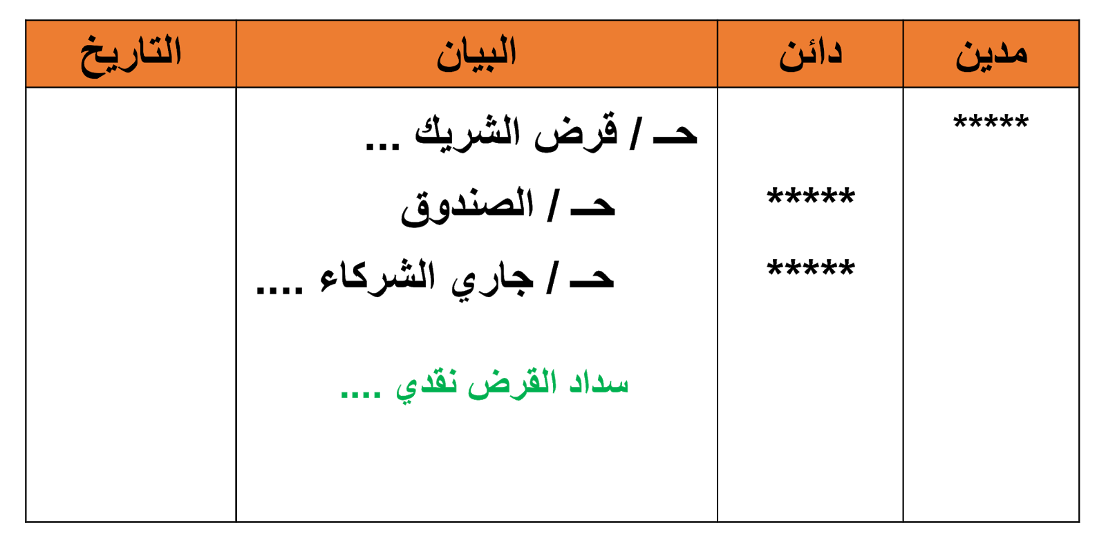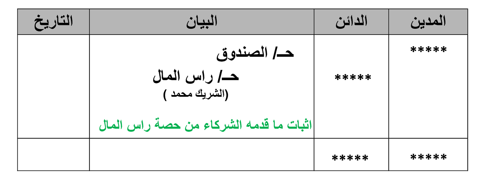 كيفية عمل القيود عند سداد احد الشركاء حصة شريك