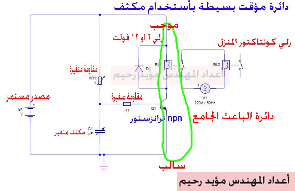 طريقة عمل دائرة مؤقت تايمر بأستخدام المكثف الكهربائي