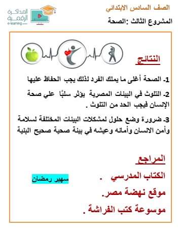 مشروع بحث كامل عن الصحة الصف السادس الابتدائي