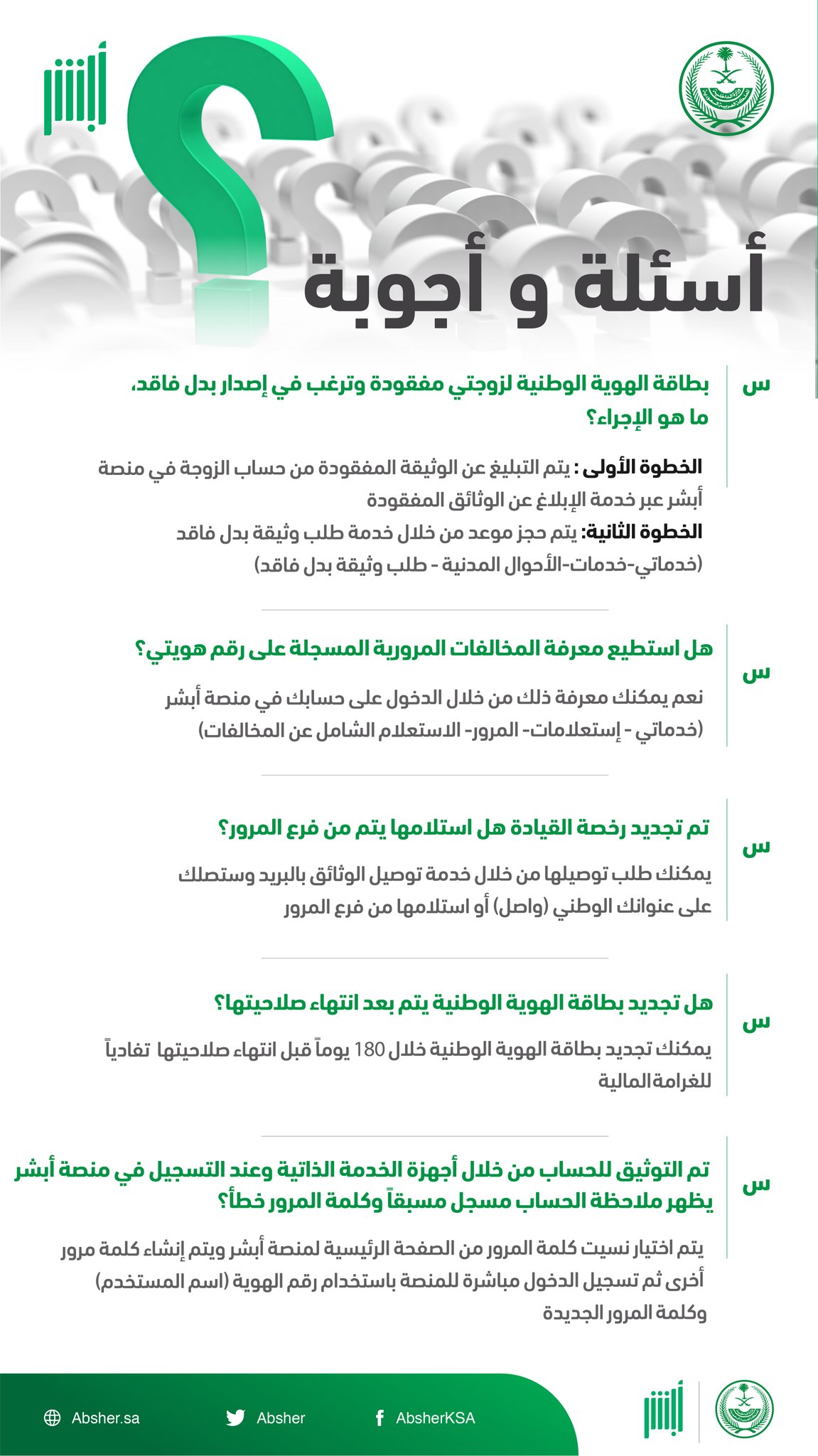 أبشر On Twitter تغريدة أسبوعية حول أبرز الأسئلة الأكثر استفسار ا بخصوص خدمات منصة أبشر Https T Co Bqcymvebax