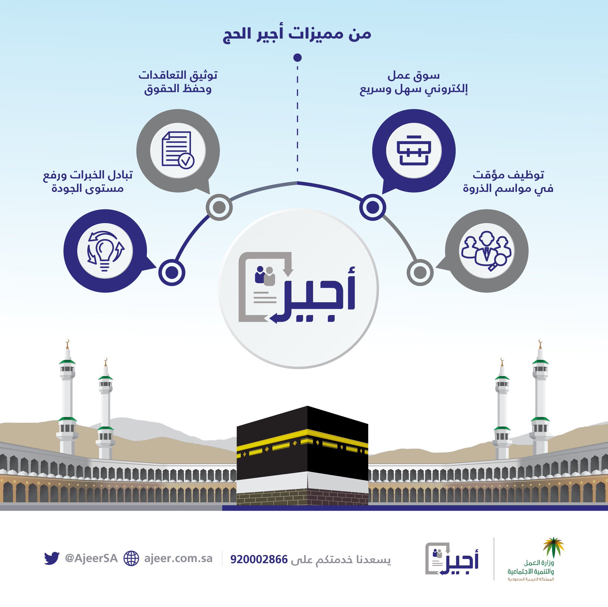 وزارة الموارد البشرية والتنمية الاجتماعية A Twitteren العمل والتنمية الاجتماعية إتاحة إصدار تصاريح العمل المؤقت في موسم الحج من خلال بوابة أجير Https T Co Avgloynuca Https T Co Ax78rvb4a3