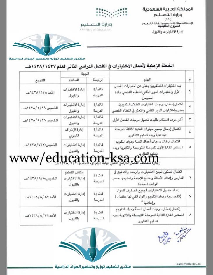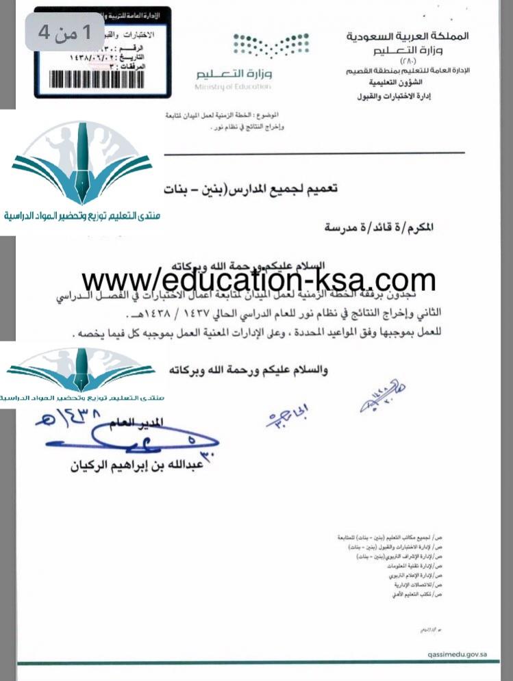 الخطة الزمنية لمتابعة أعمال الإختبارات في الفصل الثاني وإخراج النتائج في نظام نور منتدى التعليم توزيع وتحضير المواد الدراسية