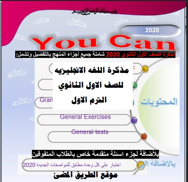 مذكرة اللغه الانجليزيه للصف الاول الثانوي الترم الاول 2020 مذكرة You Can