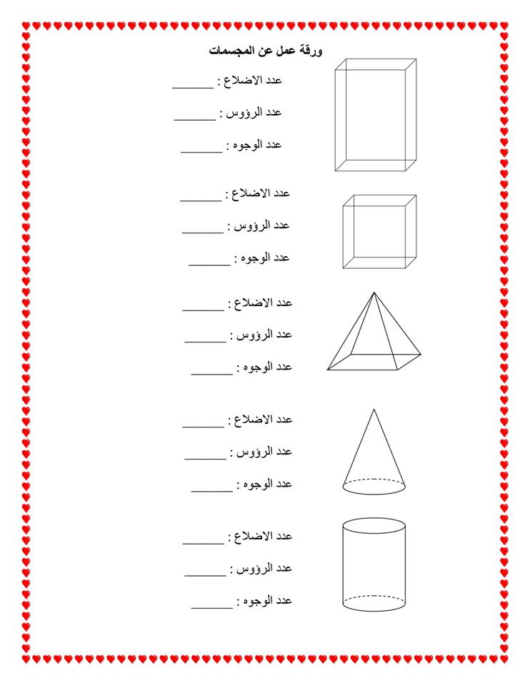 ورقة عمل المجسمات الصف الأول رياضيات الفصل الثاني المناهج السعودية