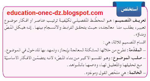 تحضير درس منهجية تصميم موضوع في اللغة العربية للسنة الثانية متوسط