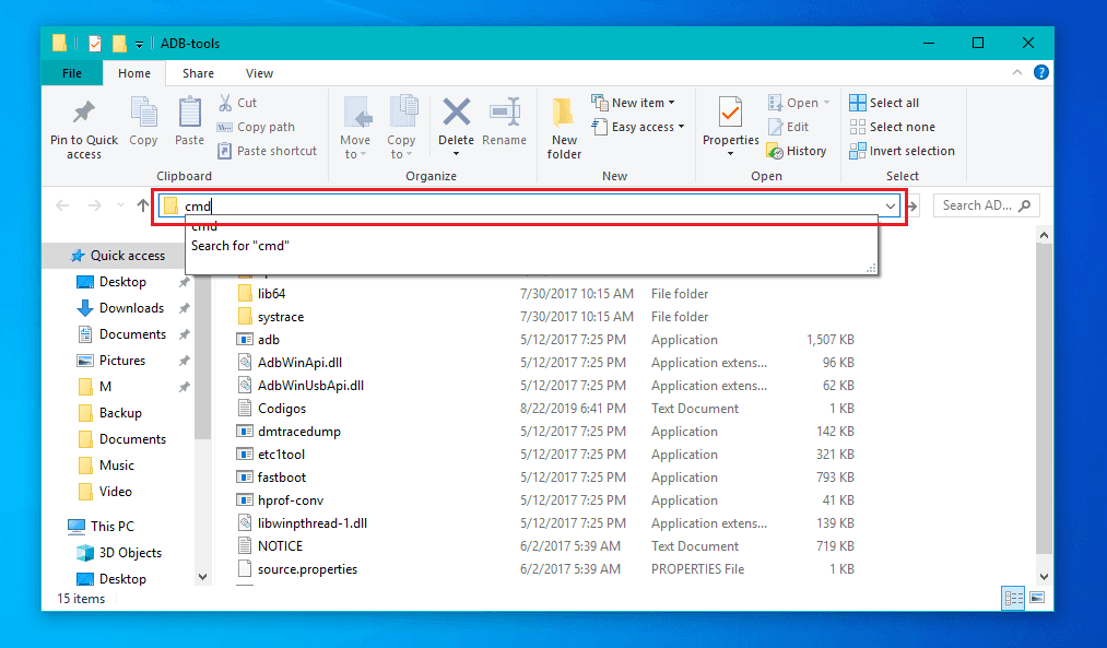افتح إطار أوامر Adb أو Fastboot في الدليل الأيمن البرمجيات 2021
