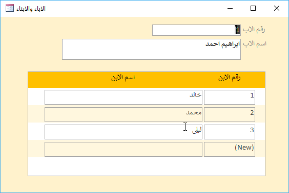 إنشاء نموذج يحتوي على نموذج فرعي نموذج له علاقة واحد لأكثر Access