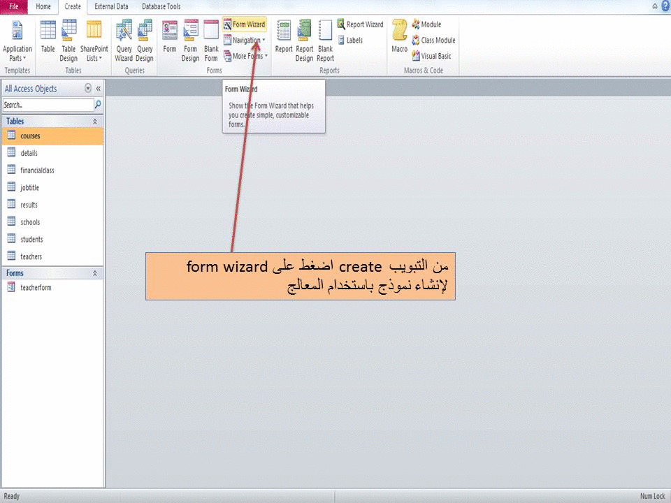 الدرس 24 إنشاء النماذج Forms باستخدام المعالج Form Wizard وطرق أخرى فى الاكسيس Microsoft Access مدرسة الويب Web School