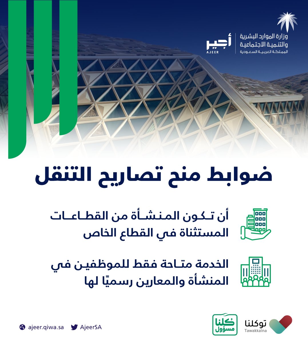 أجير On Twitter ندعو جميع منشآت القطاع الخاص المستثناة من منع التجول اتباع الأنظمة باستخراج تصريح التنقل للقوى العاملة لديها من خلال منصة أجير أجير التنقل توكلنا Tawakkalnaapp Https T Co Wer3wxwret