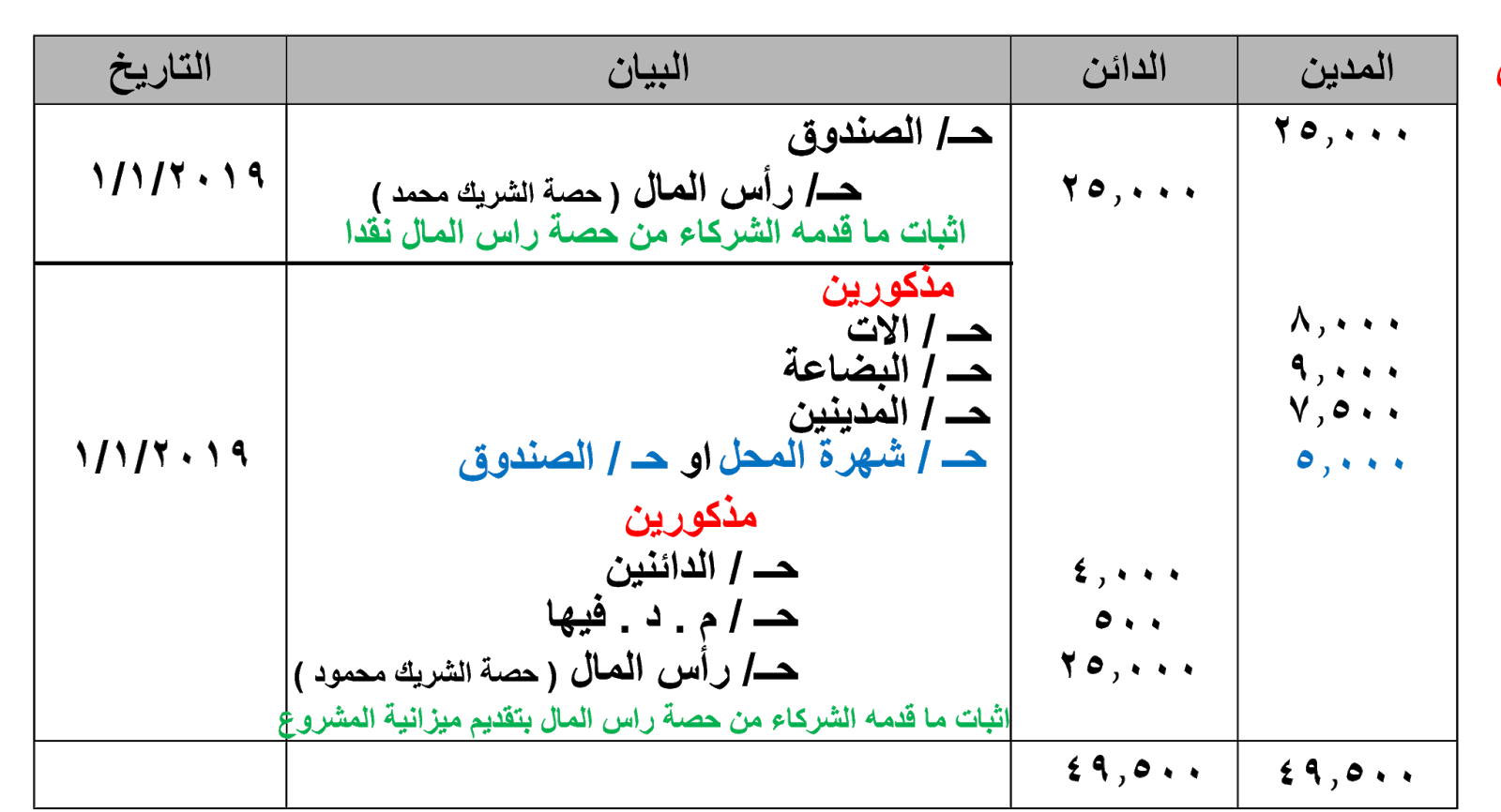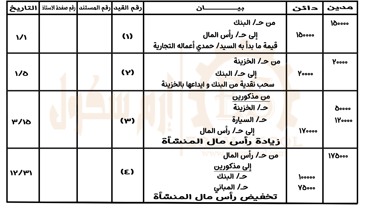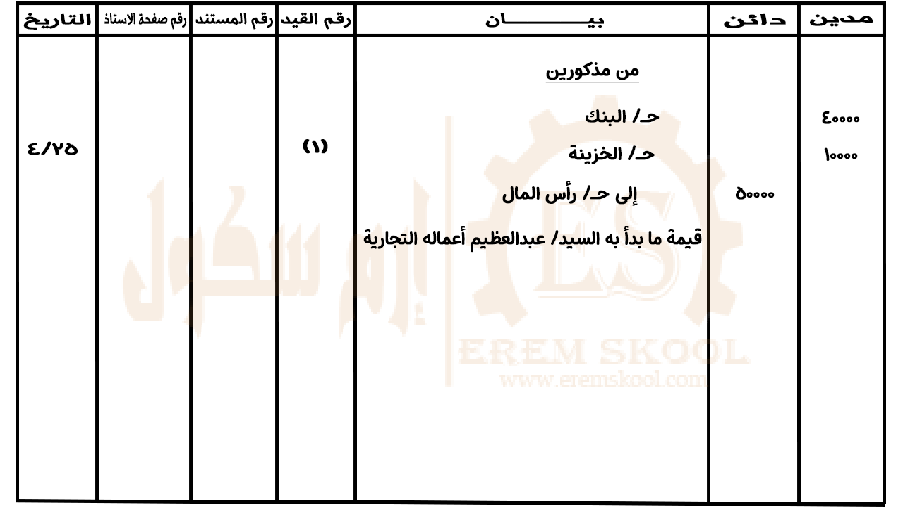 كيف يتم عمل قيد اليوميه لراس المال