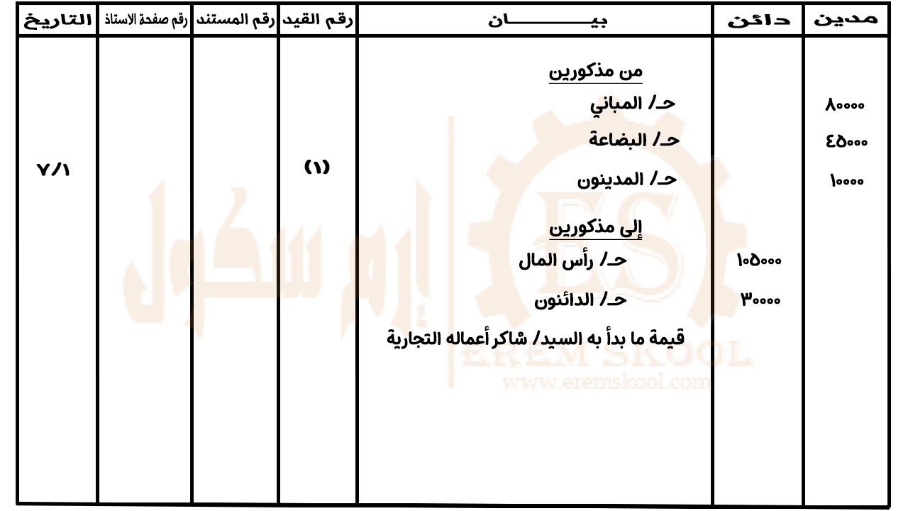 اعداد قيود اليومية و تسجيل العمليات في دفتر اليومية إرم سكول