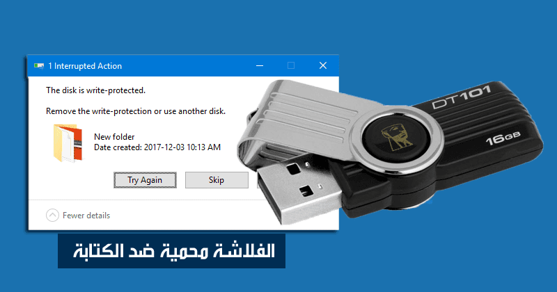 حل مشكلة الفلاشة محمية ضد الكتابة The Disk Is Write Protected ولا تقبل النسخ