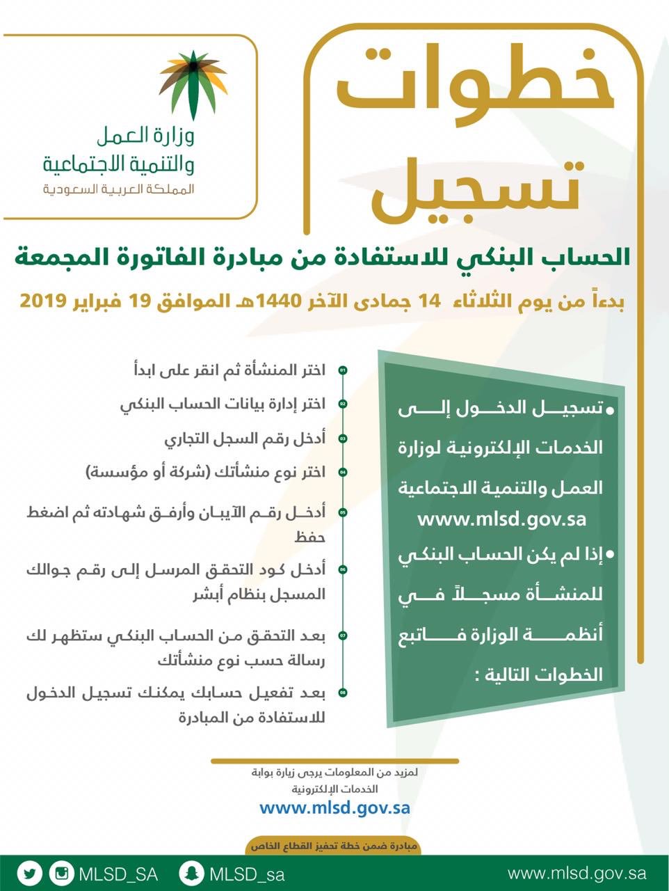 وزارة الموارد البشرية والتنمية الاجتماعية On Twitter ابتداء من يوم الثلاثاء 19 فبراير تبدأ الوزارة باستقبال طلبات المنشآت المستحقة للاستفادة من مبادرة الفاتورة المجمعة Https T Co Ntjgu29gnv