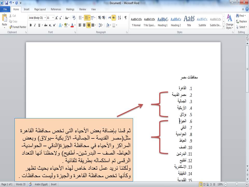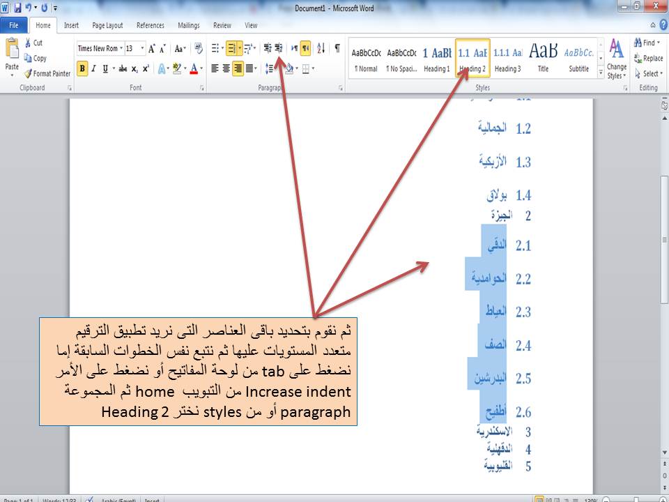 كيف يمكن عمل تسلسل للفقرات في الوورد