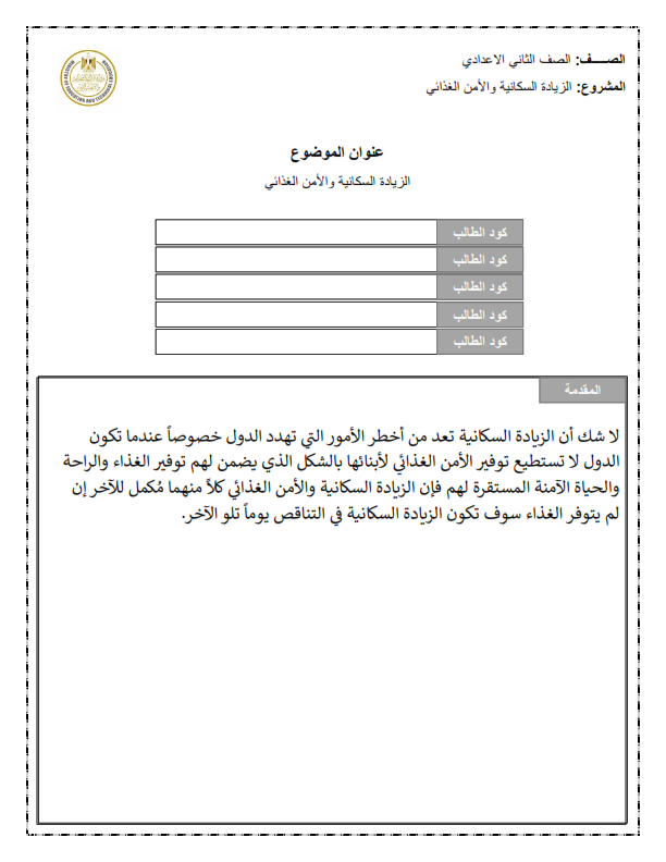 مشروع بحث عن البيئة الصف الثاني الإعدادي 2 نموذج توضيحي